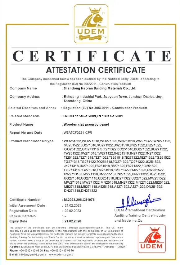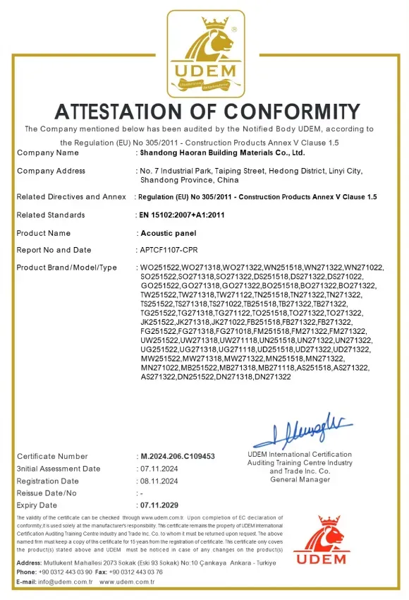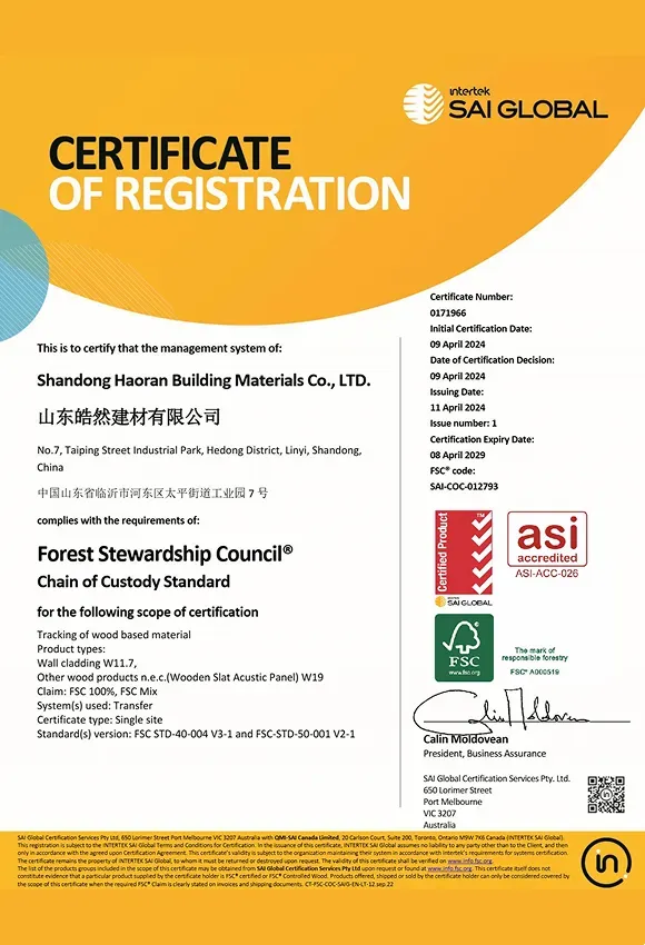 Shandong Haoran Building Materials Co., Ltd. is a comprehensive building panel enterprise integrating design, research and development, production, sales and service. Our main products include: natural wood veneer acoustic wall panels, technical wood veneer acoustic wall panels, three-side covered acoustic wall panels, hexagonal acoustic wall panels, square acoustic wall panels and other special-shaped acoustic wall panels.