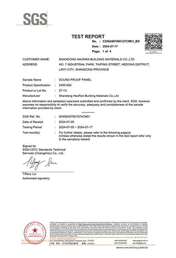 SGS Sound absorption certificate