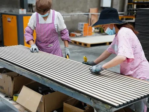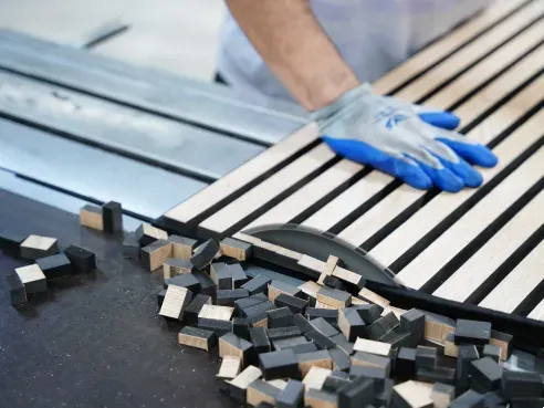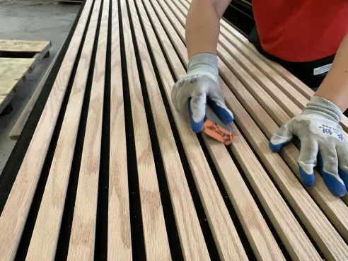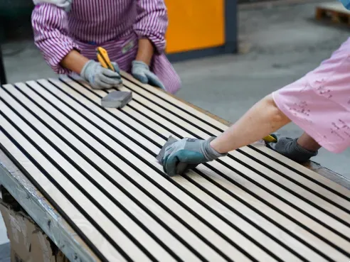 Our main products include: natural wood veneer acoustic wall panels, technical wood veneer acoustic wall panels, three-side covered acoustic wall panels, hexagonal acoustic wall panels, square acoustic wall panels and other special-shaped acoustic wall panels.